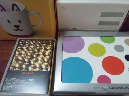 あと、MNPでもれなく貰えるお父さん犬のマグカップの4点でした。
